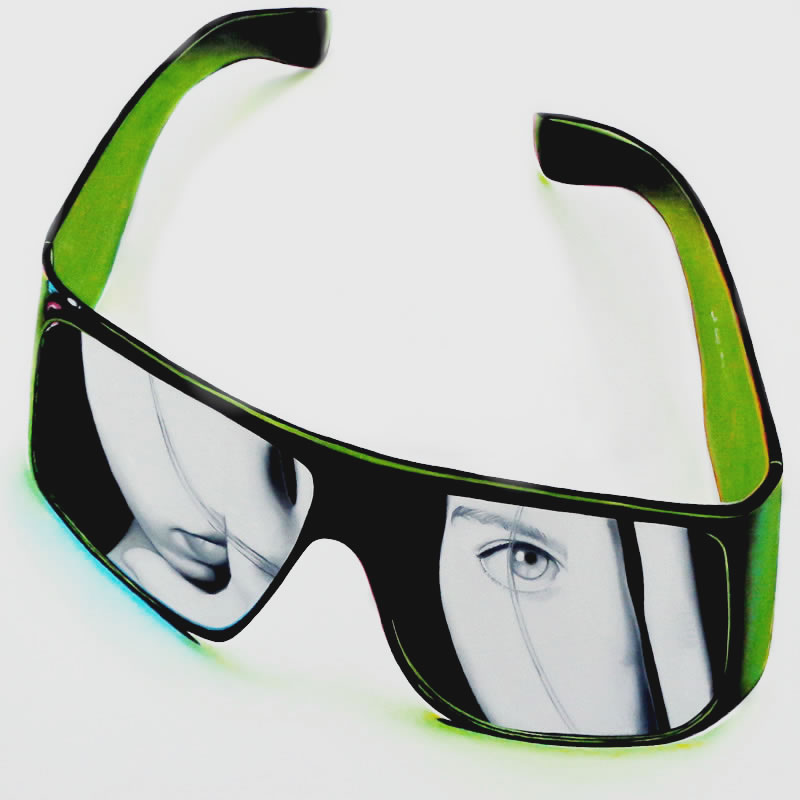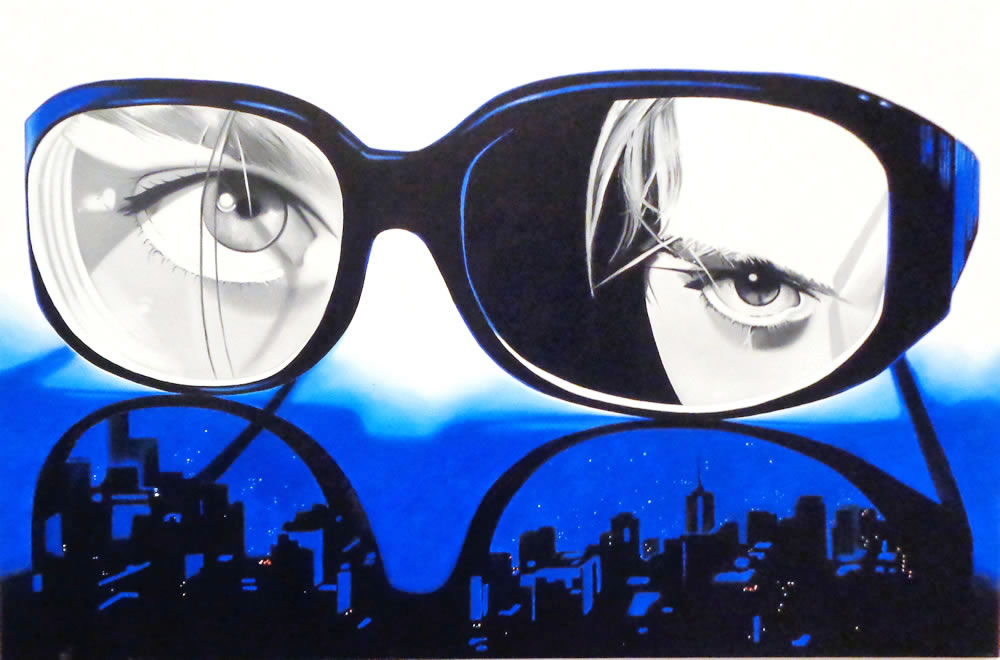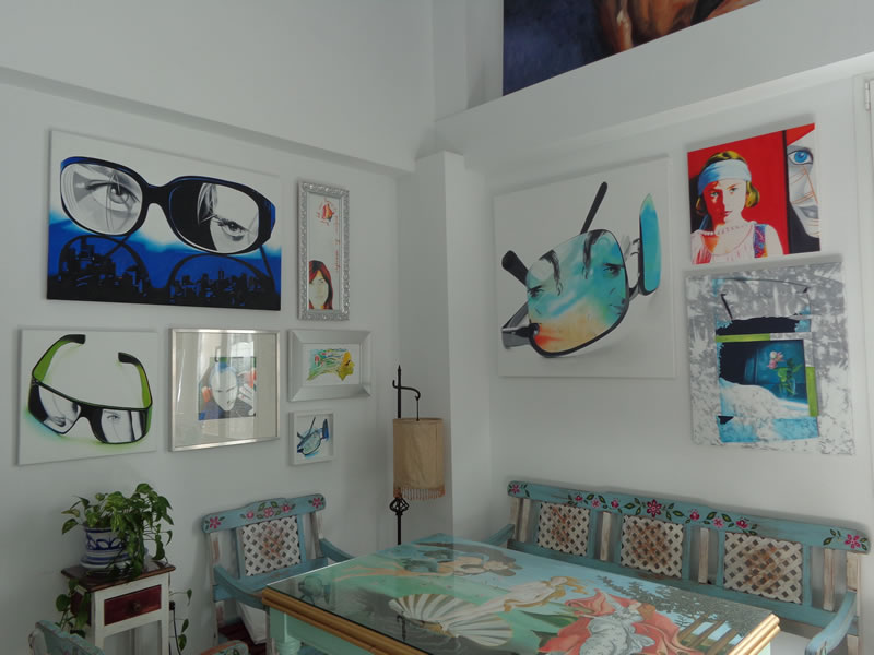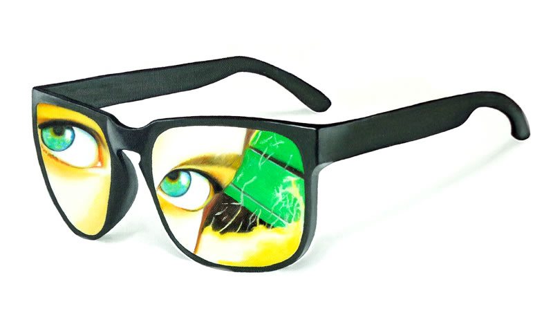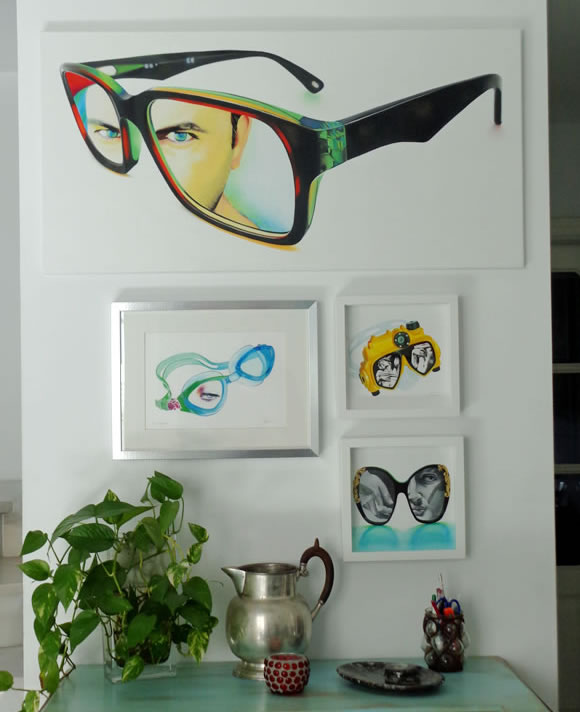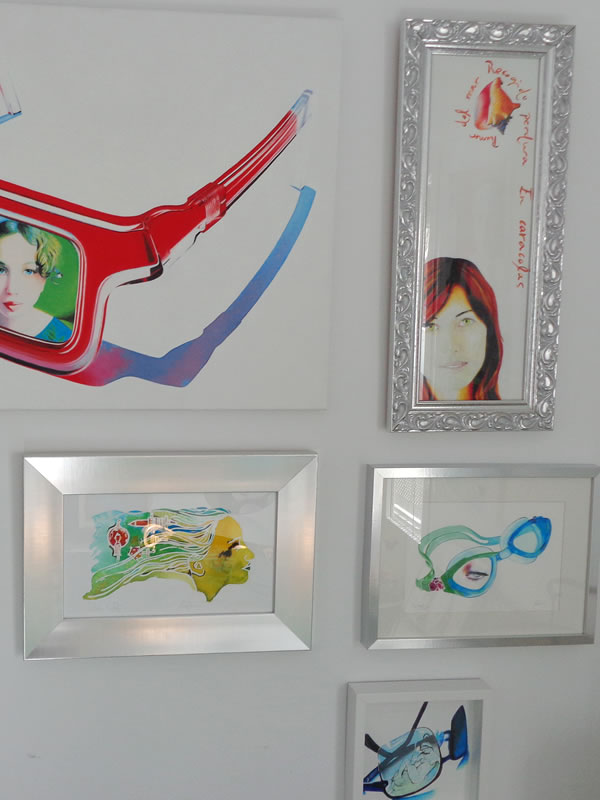 Todos estos personajes, atrapados detrás de los inexistentes cristales de una variopinta colección de gafas, desafiantes, expuestos a miradas de otros, audaces se transforman en los espectadores del público que atento los observa.