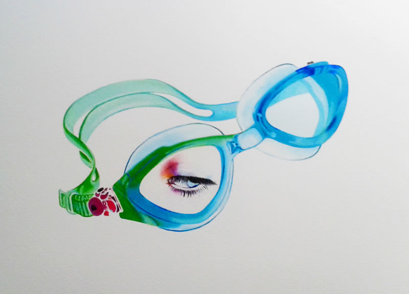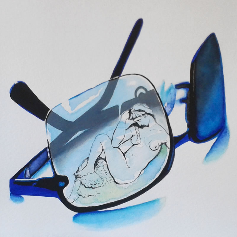 "Atrapados" surge como un juego de encuadres: encuadre de las gafas dentro del lienzo o papel, jugando a veces con las sombras que éstas proyectan sobre la superficie que las sustenta; y encuadre de los retratos dentro de las gafas, utilizadas como medio para enfocar aquellos detalles que me interesan de la expresión captada en un instante concreto.