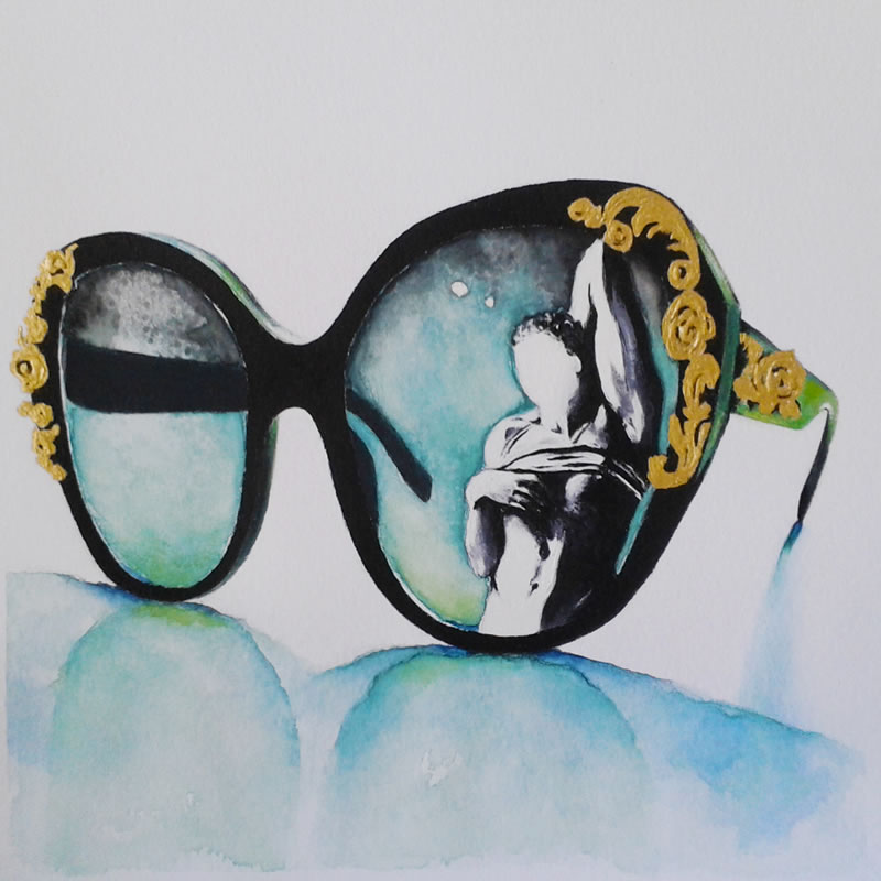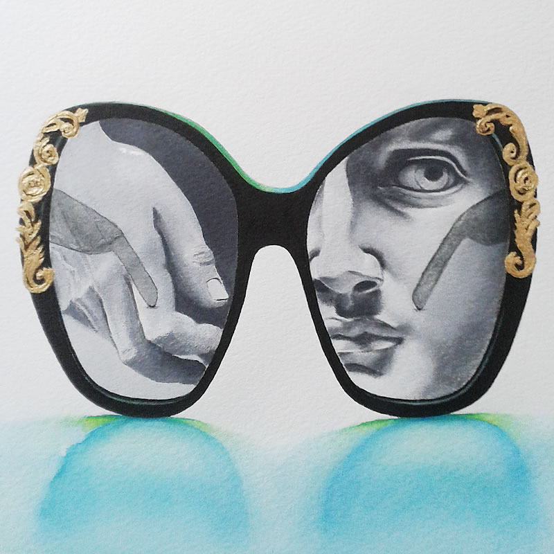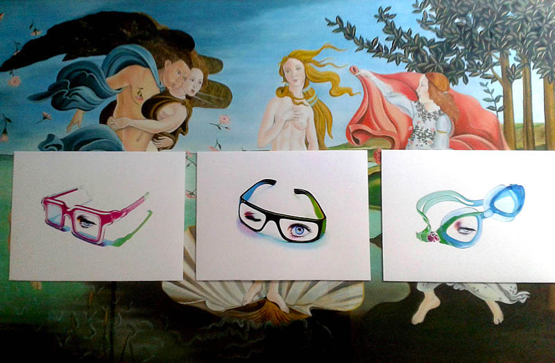 Había algo especial en los ojos de esta chica mientras me hablaba de los papeles pequeños con dibujos de esculturas de Miguel Ángel. No sé cómo explicarlo. Sus palabras me trasmitían un entusiasmo diferente mientras me decía: "¡Me encanta esa mezcla de figuras clásicas con las gafas modernas!".