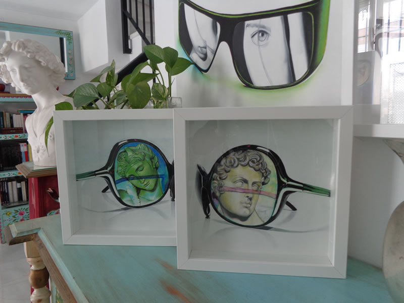 —Sí, para hacer estos degradados de aquí —dijo señalando las monturas—, has usado el aerógrafo.