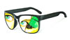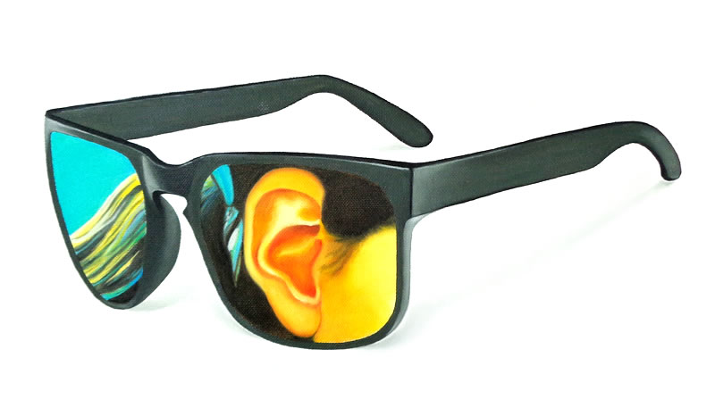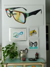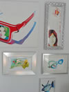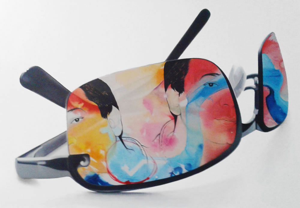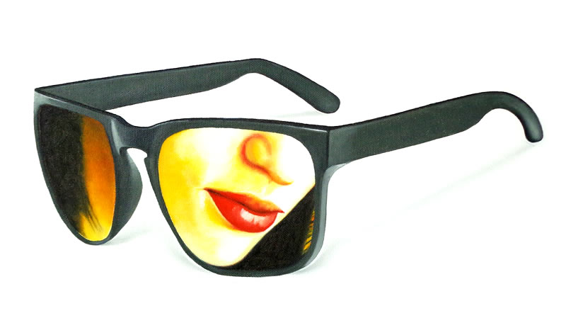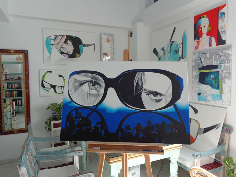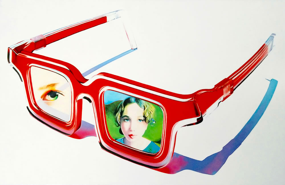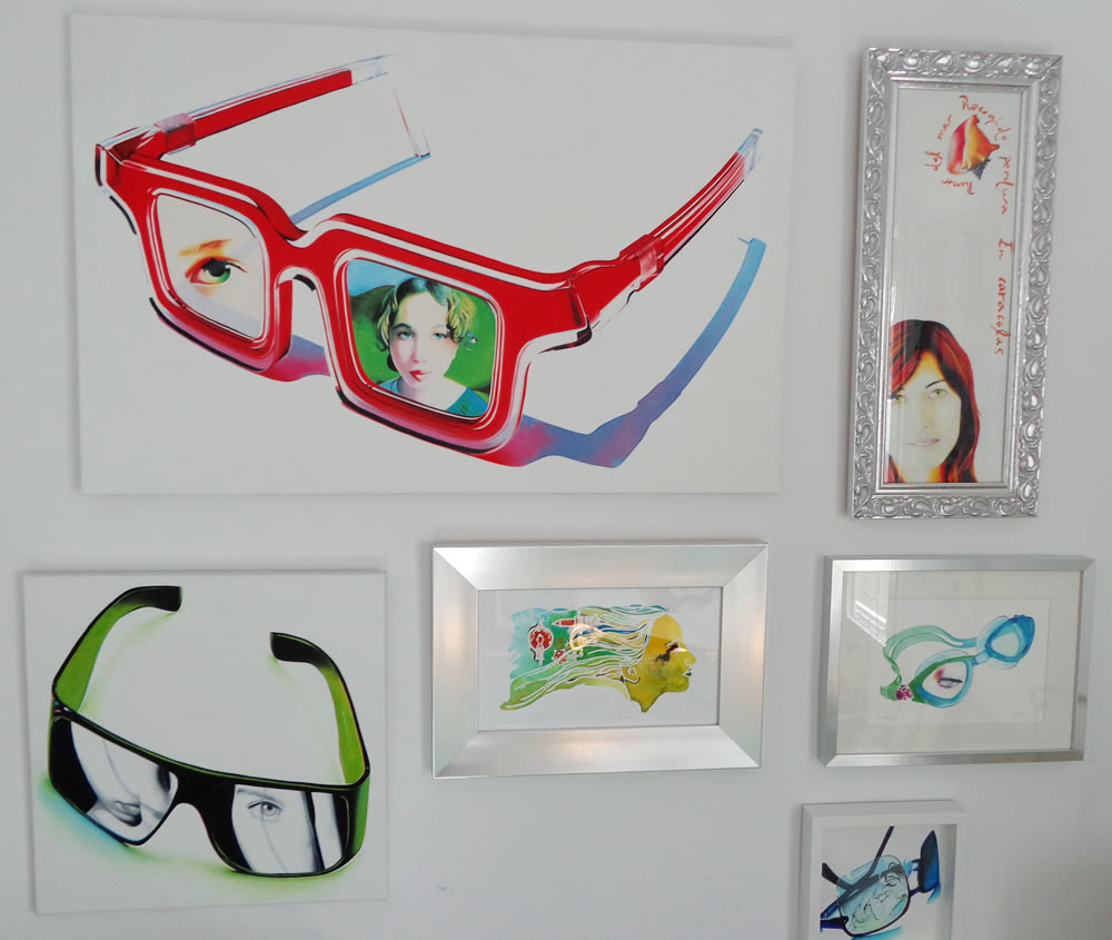 Todos estos personajes, atrapados detrás de los inexistentes cristales de una variopinta colección de gafas, desafiantes, expuestos a miradas de otros, audaces se transforman en los espectadores del público que atento los observa.