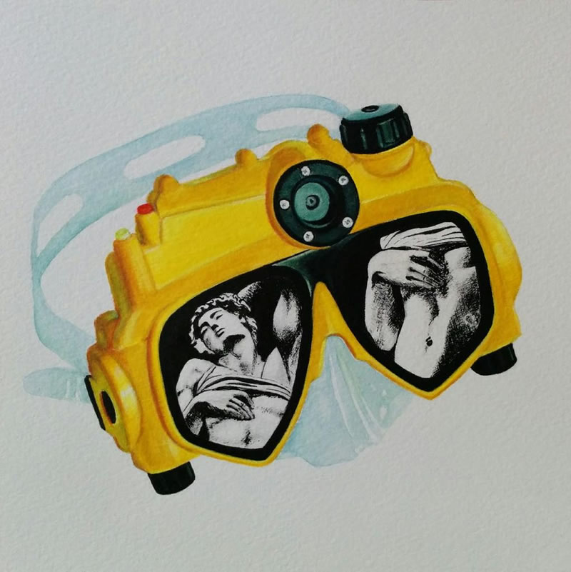 Había algo especial en los ojos de esta chica mientras me hablaba de los papeles pequeños con dibujos de esculturas de Miguel Ángel. No sé cómo explicarlo. Sus palabras me trasmitían un entusiasmo diferente mientras me decía: "¡Me encanta esa mezcla de figuras clásicas con las gafas modernas!".