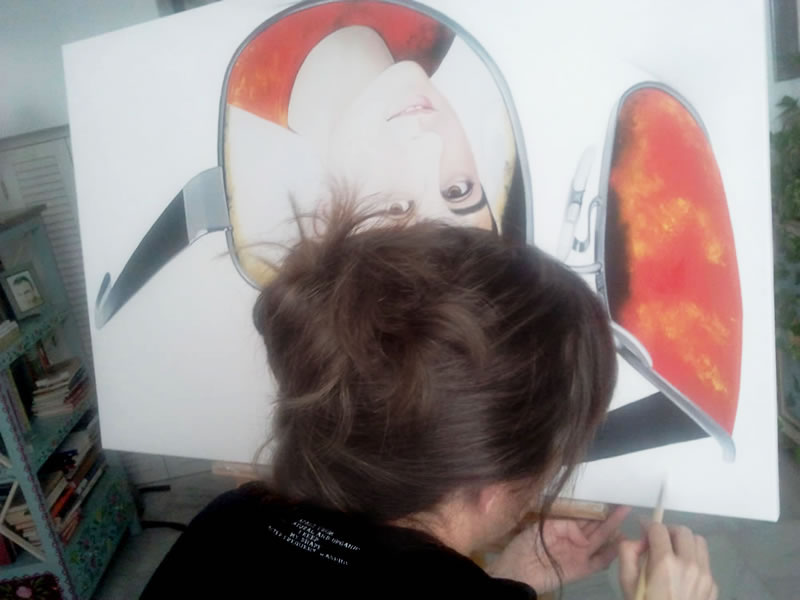 —Empecé hace tres o cuatro años, pero lo he ido compaginando con otros cuadros y con mi trabajo, soy programadora de páginas web. El año pasado, con la exposición ya planteada, sí que pinté muchos, por lo menos diecisiete, entre óleos y papeles —le respondí.