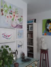Me miró sonriendo y continuó comentándome las obras del fondo con los que parecían argumentos interesantes, por ciertas palabras sueltas que yo lograba distinguir: color, sombras, trazo...