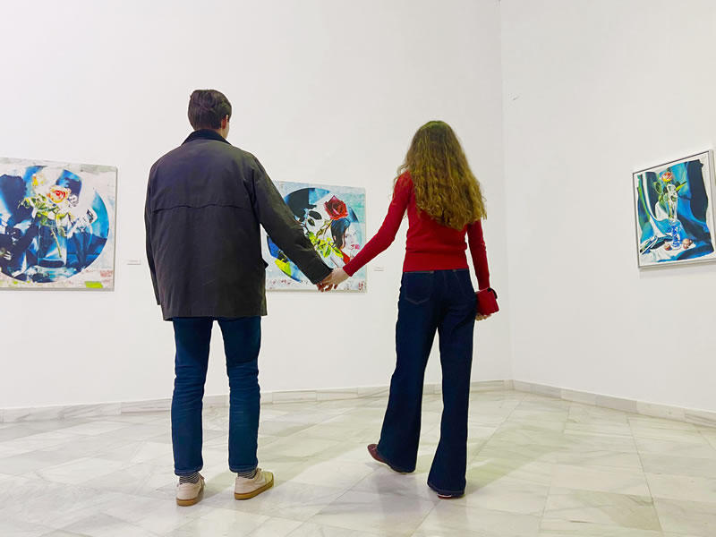Partiendo de esa idea general, de ese juego imprescindible de reflejos y transparencias, entremezclando, capa a capa, personajes, colores y distorsiones, van surgiendo uno tras otro, como realidades inesperadas, los distintos grupos de variaciones que conforman estas inmersiones, cada cual centrado en un tema concreto: