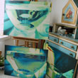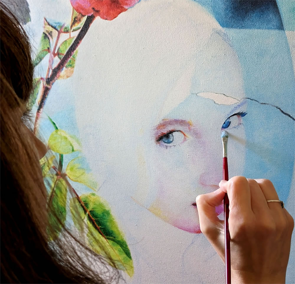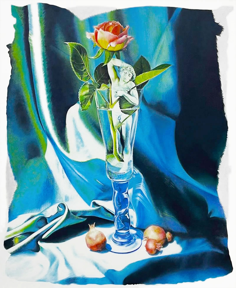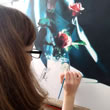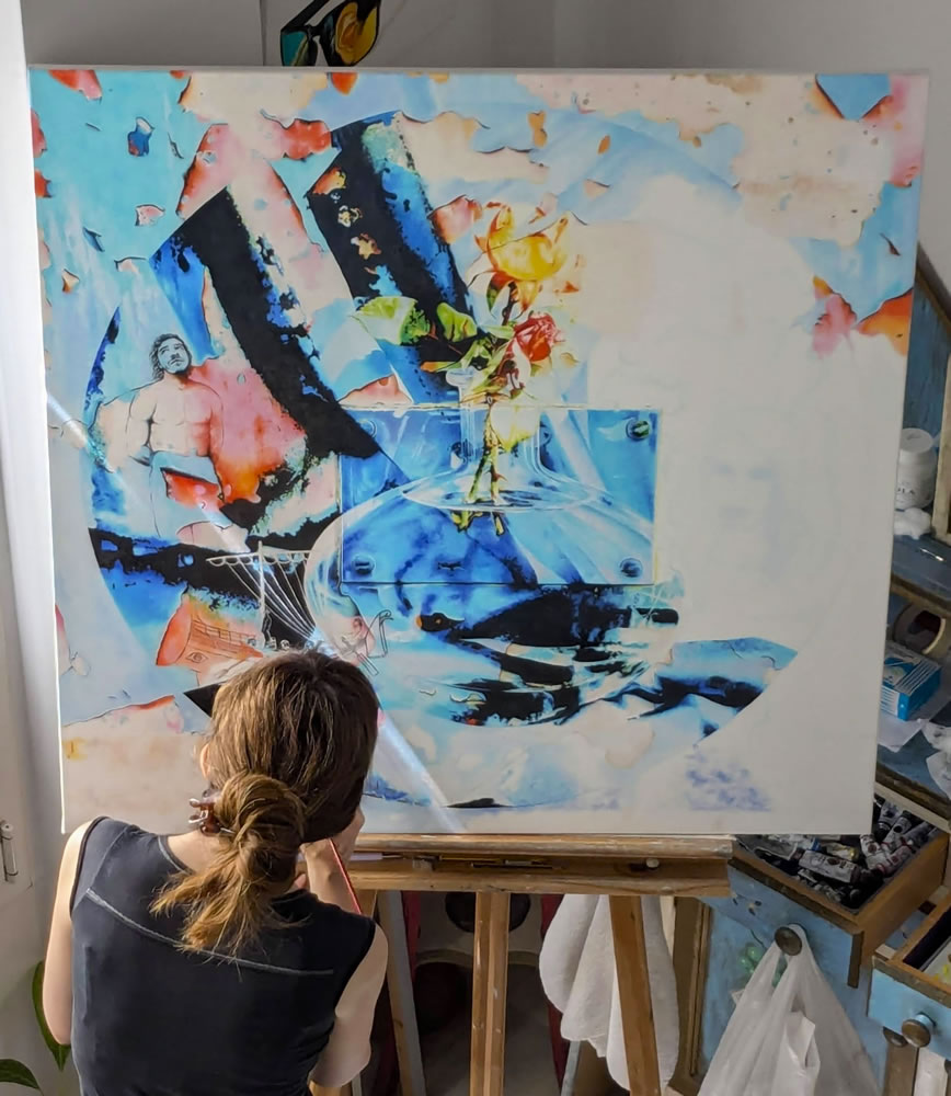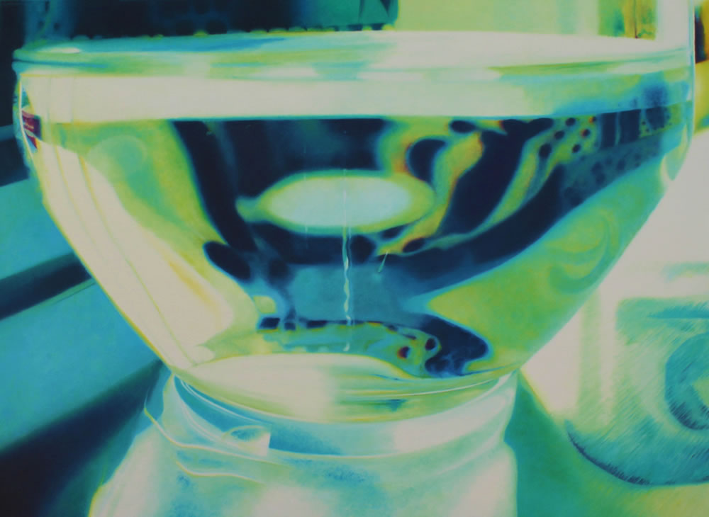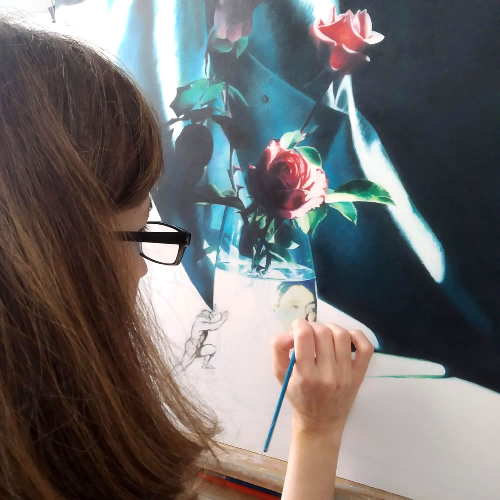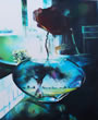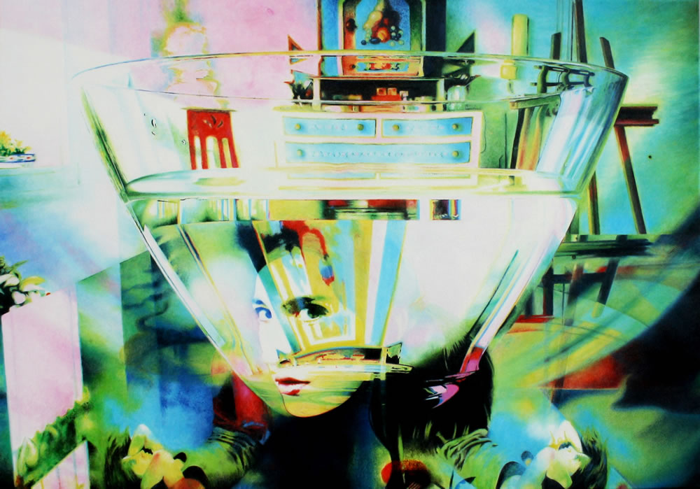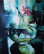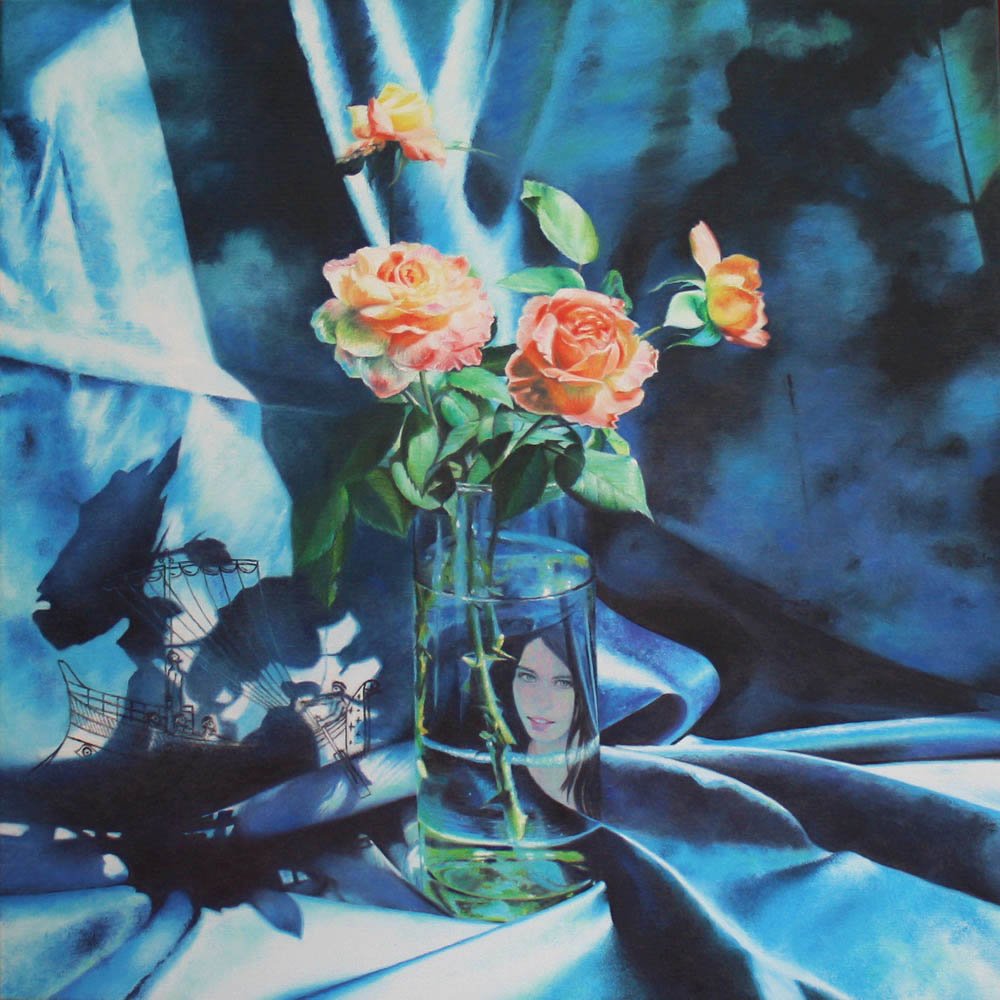 "Inmersiones" recoge una serie de pinturas al óleo inspiradas en los efectos que produce un rayo de sol al incidir sobre un recipiente de cristal con algo de agua.