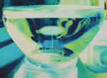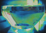que se recrea en un vaso de agua iluminado por un rayo de sol en la sobremesa...