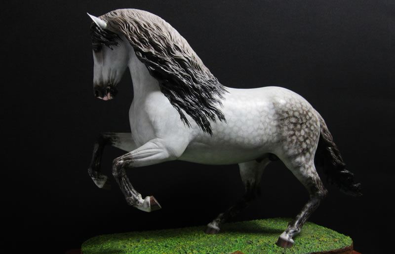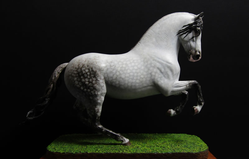 La pintura a mano le permite un acabado en policromados tan ricos y variados como los que presenta el propio caballo en la naturaleza.