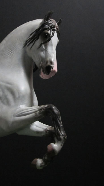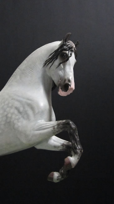 Referencia: 20303 Modelo: Caballo Pirueta Tipo: Tordo rodao crin oscura Técnica: Poliresina pintada a mano