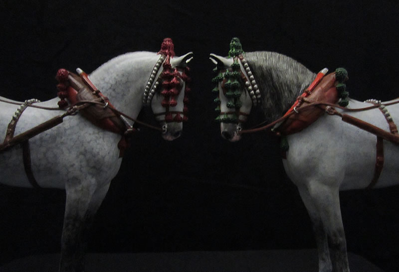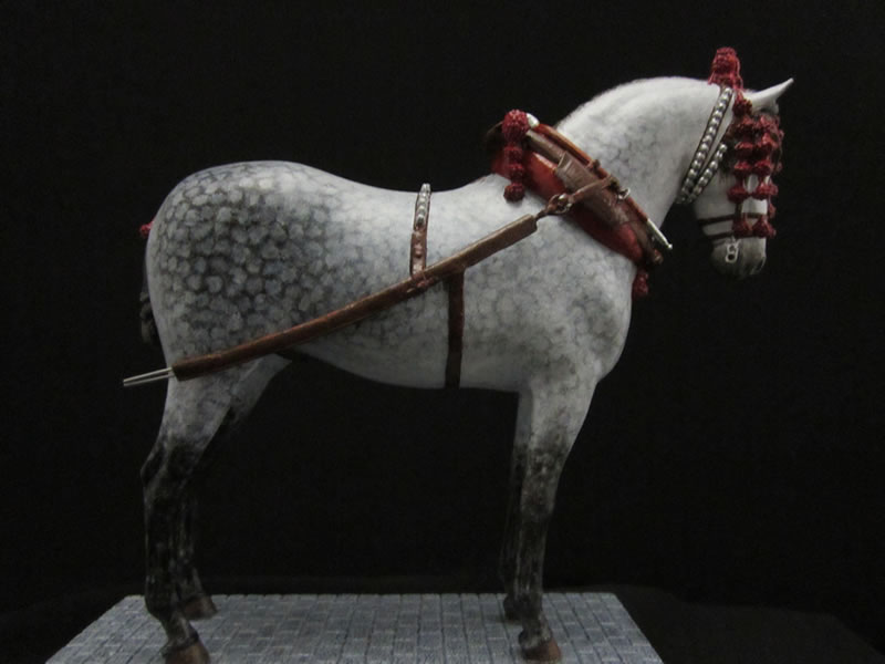 La pintura a mano le permite un acabado en policromados tan ricos y variados como los que presenta el propio caballo en la naturaleza.