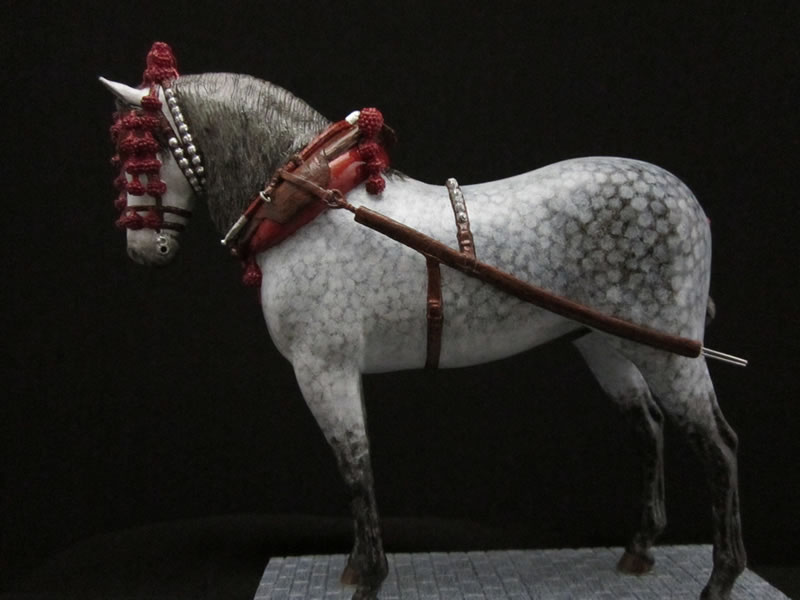 Referencia: 20501 Modelo: Caballo Calesera Tipo: Borlajes rojos Técnica: Poliresina pintada a mano