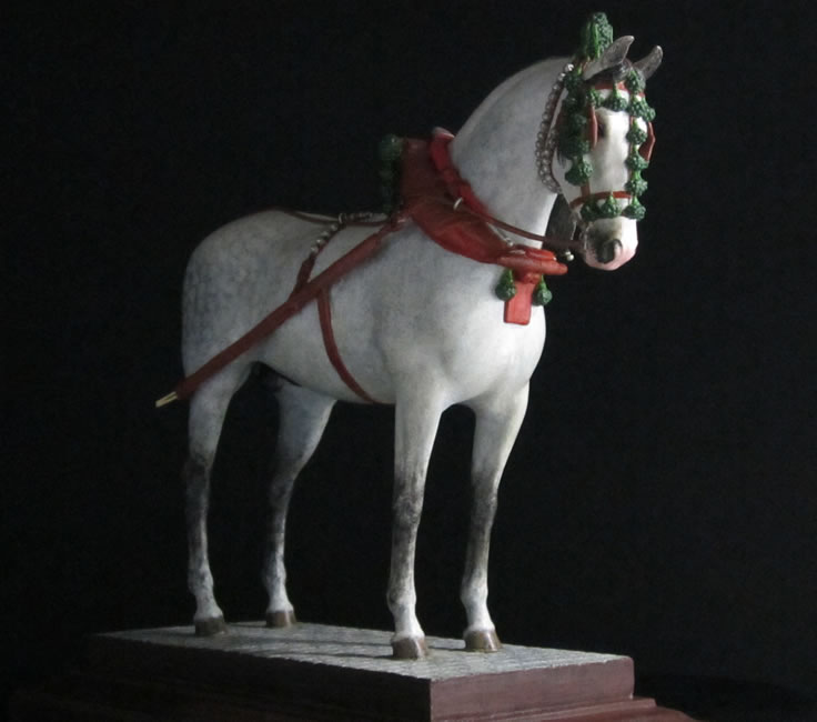 La pintura a mano le permite un acabado en policromados tan ricos y variados como los que presenta el propio caballo en la naturaleza.