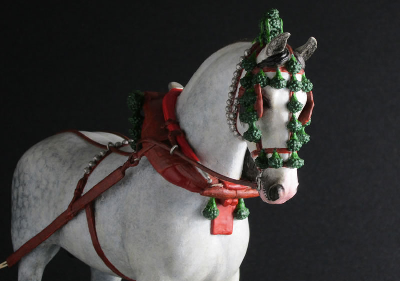 Referencia: 20502 Modelo: Caballo Calesera Tipo: Borlajes verdes Técnica: Poliresina pintada a mano